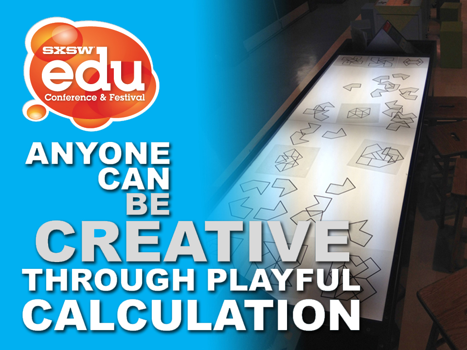 SXSWedu 2014 in Austin, TX was a huge success! While there I gave a talk in the SXSWedu Playground. The talk challenged participants to expand their thinking on what it means to calculate and introduced preliminary research of the game "Shape It!" being used to study children's play and cognitive spatial skills at the Boston Children's Museum.